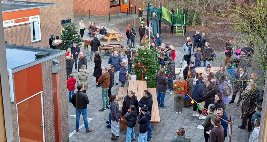 Om half twee werden de ouders op het kleuterplein getrakteerd op koffie, thee en warme chocolademelk. Op een groot scherm konden zij de door de leerlingen gemaakte kerstfilm bekijken. Na afloop gingen de kinderen met hun ouders mee naar huis om van hun welverdiende vakantie te genieten.